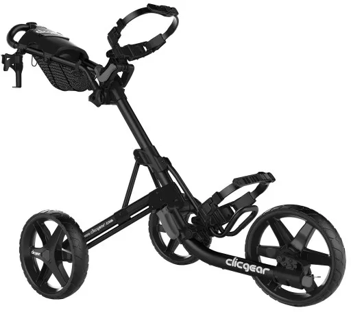 The Clicgear Model 4.0 Push Cart is a dependable, easy-to-use cart designed to make walking the course more comfortable and less tiring. Its adjustable bag straps and secure saddle keep your bag stable over uneven ground, while the smooth-rolling airless tires and lightweight aluminum frame provide a steady, effortless push from tee to green.