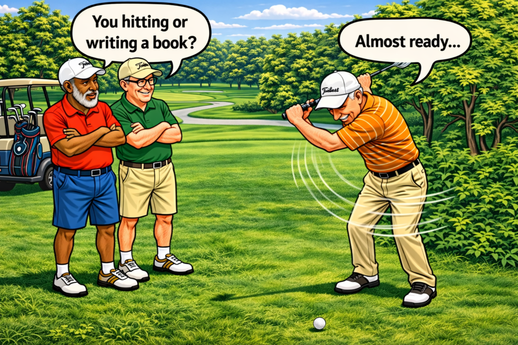 Or the guy who takes 4 practice swings and still says, “Almost ready…”